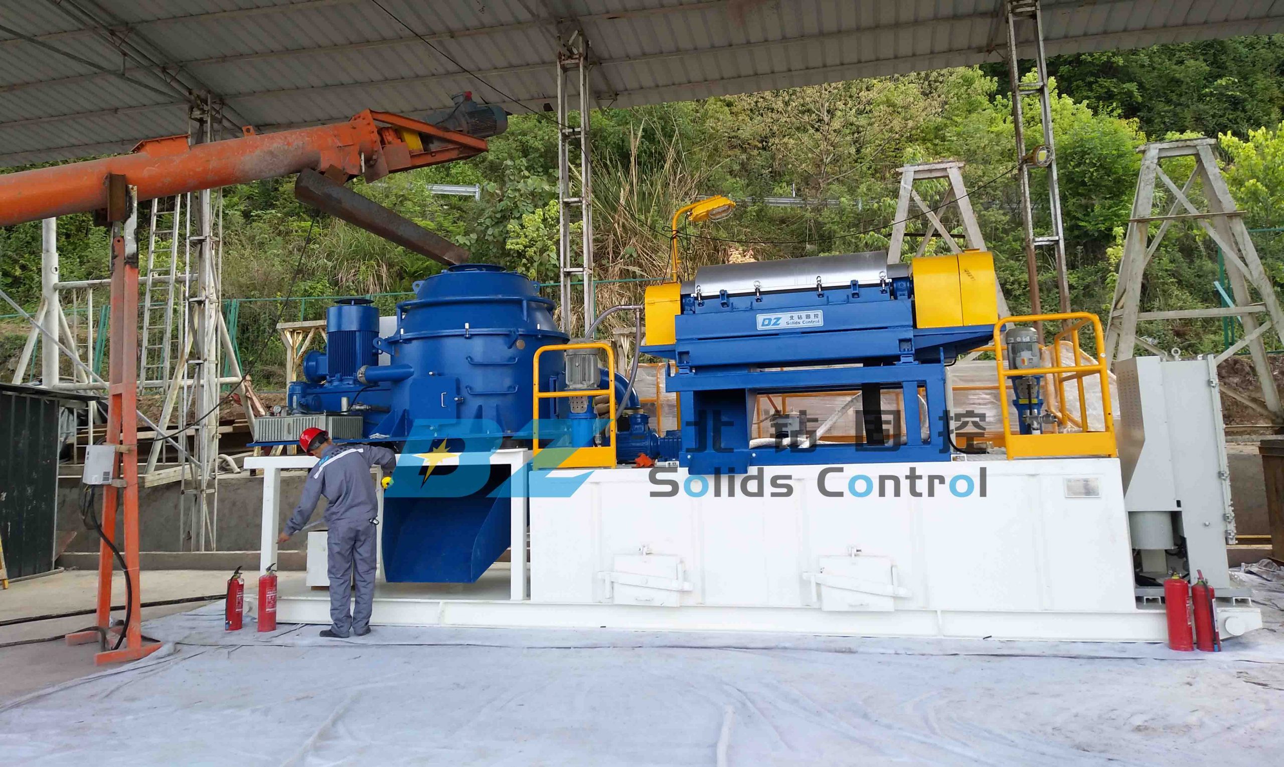 BZ water-based drilling waste management process: The mud to be treated first be transferred to a high-G shale shaker for treatment, and then to decanter centrifuge through a screw pump for further treatment. The mud processed by the centrifuge goes into the mud tank and is stirred and injected again into the mud circulation system. The waste from the disposal process is transported to the cuttings box by the screw conveyor and dragged out of the site for burial or other disposal.